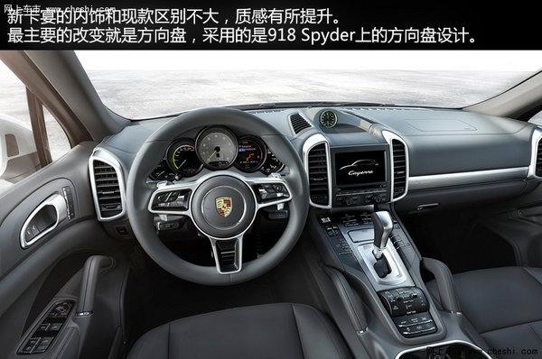 为了提升车内的乘坐舒适感,保时捷对2015款卡宴的地盘也进行了升级。内饰方面新卡宴配备了918 Spyder上那款有带有换挡拨片的全新多功能方向盘,顿时让卡宴的内饰增色不少,运动感更加突出。
