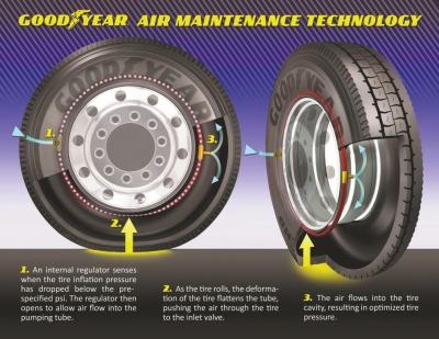 据了解,自2011年以来,固特异的研发团队开始着力于开发并测试胎压自控技术,此项技术不仅有助于节省燃油和降低二氧化碳排放,还可以延长胎面使用寿命,提高轮毂的耐久性和安全性。10月份,固特异宣布将利用美国货运车队开展为期数月的胎压自控技术(AMT)车队测试,涉及此项技术的研究项目还得到了美国能源部车辆技术办公室的支持。