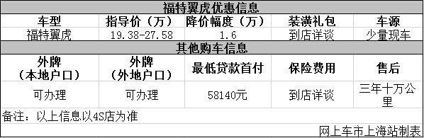 日前网上车市上海站从上海福银福特4s店了解到,目前该店福特翼虎优惠出售,详细请见下表:
