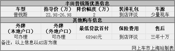 上海:普锐斯现金优惠2万元 三年十万公里保养