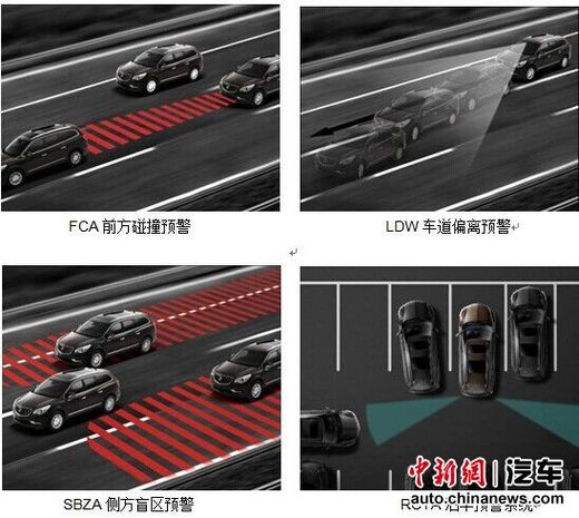 安全性是别克品牌的一贯优势,新昂科雷在原款车型的基础上加装了别克智慧安全科技,拥有包括FCA前方碰撞预警、LDW车道偏离预警、SBZA侧方盲区预警和RCTA泊车预警系统等多项先进主动安全系统,同时全球首创的前排中央气囊更是被动安全的又一创新。优秀的主、被动安全集合,令新昂科雷在同级产品中树立了高标准的安全标杆,并荣获北美2013年度IIHS“五星级”安全评价。