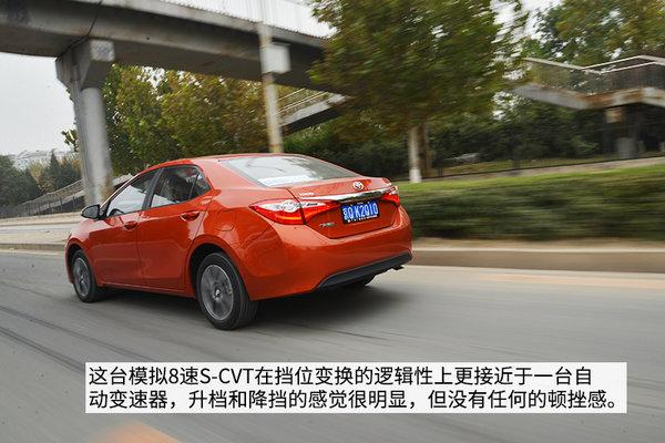 模拟8速的CVT在挡位变换的逻辑上让这台雷凌开起来不算太枯燥,如果配合方向盘换挡拨片,整个的动力表现也趋向于运动模式,而且拨片的换挡速度也很合理,不会有太多的拖沓感觉。其实,这台雷凌的表现和卡罗拉基本相同,只是用这台S-CVT增强了一些驾驶乐趣,不至于和上一代的卡罗拉一样,纯走舒适路线,而且动力方面也不那么尽如人意。所以,不论是新雷凌还是新一代卡罗拉都将舒适性和运动型进行了一些平衡。