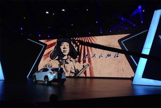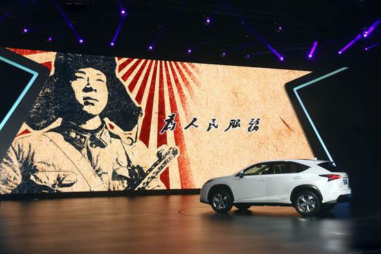 中国经济网记者找到的多张照片都清楚地表明:“雷锋肖像图案和毛泽东手书‘为人民服务’字样”,确实出现在11月19日晚,“惊世 锋行 LEXUS雷克萨斯全新中型豪华SUV NX震撼上市”发布会上,而且还被雷克萨斯标志性的汽车前格栅轮廓线框住(见下图)。