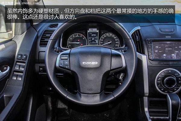 来到车内,也可能是我对D-MAX的期望过高了,而忽视了他真正的售价和成本。内饰设计上虽然没有什么可挑剔的,但内饰的用料和做工真的没有达到一个很好的水准,全部内饰全都是硬邦邦的硬质塑料。