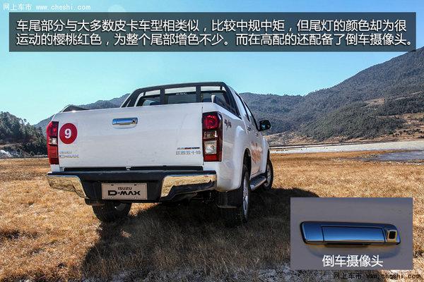 车尾部分与大多数皮卡车型相类似,比较中规中矩,但尾灯的颜色却为很运动的樱桃红色,为整个尾部增色不少。而在高配的还配备了倒车摄像头。
