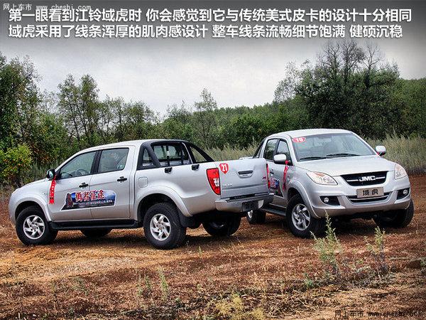 第一眼看到江铃域虎时,你会感觉到它与传统美式皮卡的设计十分相同。江铃域虎采用了线条浑厚的“肌肉感”设计,整体造型由兰博基尼、玛莎拉蒂的设计者Marc Deschamps打造,整车线条流畅细节饱满,身材健硕沉稳。域虎外形尺寸为长5325mm、宽1905mm、高1815mm,完全可以保证载人和载物的需求。