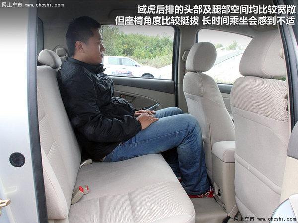 域虎后排完全可以容下三名成年人,同时车内的头部及腿部空间均比较宽敞。但是美中不足的是,座椅角度比较挺拔,乘客长时间乘坐会感到不适。为了乘客安全,域虎为后排左右两侧的乘客设计了安全带设计。