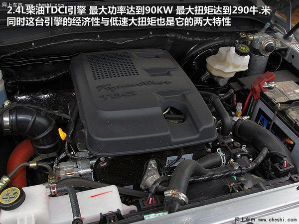 域虎配备了2.4L柴油TDCI引擎,最大功率达到90KW(140马力),最大扭矩在1600转时就达到峰值290牛.米,这台引擎的经济性与低速大扭矩的特性,是非常适合经常重载的商用车或者越野车。5速手动变速箱,在实际驾驶中感觉档位之间的行程比较长,档位十分清晰,而且入档时没有太多的生涩感。