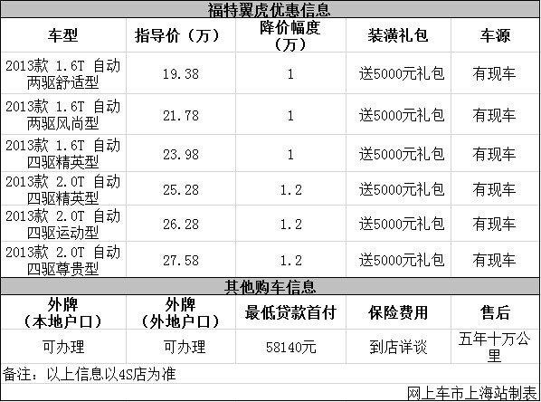 上海:福特翼虎最高优惠1.2万元 送5000元礼包