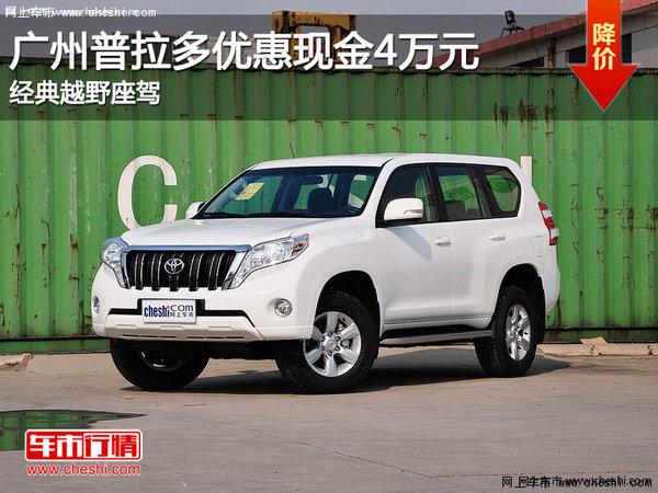 普拉多作为一汽丰田旗下国产硬派越野车,越野性能优异,现在售的国产新普拉多均搭载4.0L发动机匹配5挡手自一体变速器。近日,根据网上车市价格监控体系显示,目前购买普拉多,现金优惠4.01万元。具体车型优惠请看下表: