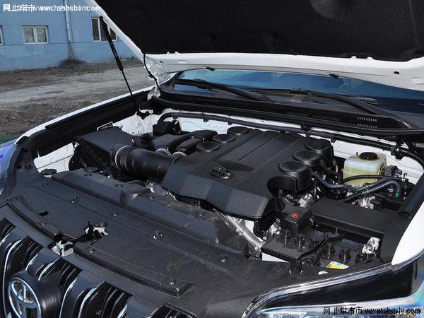 国产新普拉多4.0L车型在动力方面采用代号1GR-FE的3955ccV6发动机,可以在5600rpm发出203千瓦的最大功率,在4400rpm发出380Nm的最大扭矩。行车方面提供四种模式,分别为泥沙模式、碎石模式、沟壑模式及石块路面模式,可以实现加力档、4驱/后驱的切换等功能。此外, 新普拉多可以对前后制动力进行40:60的分配。4.0L的版本还配备有能对车辆下坡速度进行限制的陡坡缓降系统。该车的接近角、离去角、轴间通过角分别为32度、28度、22度。