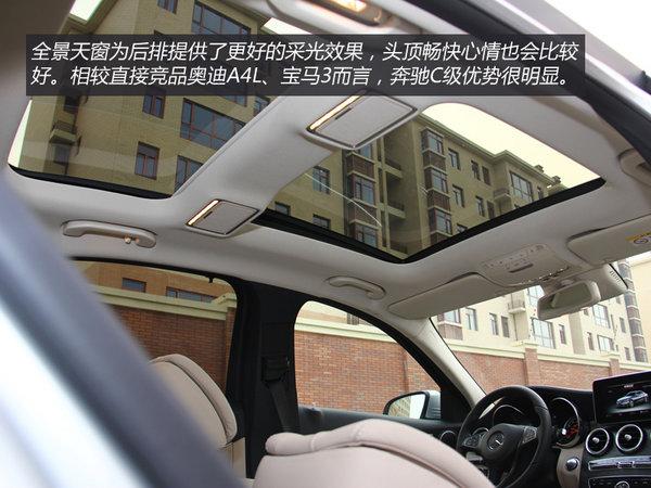 全景天窗似乎并不是豪华中级车所看重的方面,奔驰C级别则是将这一方面进行了补强。C 260 L前后天窗透光面积都很大,前半部分可以开闭,相较于直接竞争对手们可谓是抢占了先机。