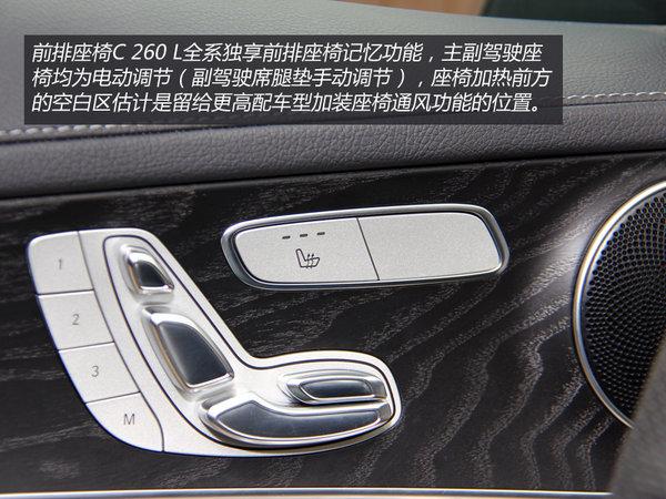 空间方面也是全新C级的重头戏,不过在看空间前,新车的座椅也值得端详一番。C 260 L身为顶配车型独享座椅以及功能,主驾驶席包括头枕跟腿垫都为电动调节,同时拥有前排三档加热功能。遗憾的是刚刚才全系“自动泊车”,现在却缺省座椅通风,这样的价格、还是顶配款理应是要有的,这样做是不是有些顾此失彼呢?要知道很多老司机停车根本就用不到雷达的好么?