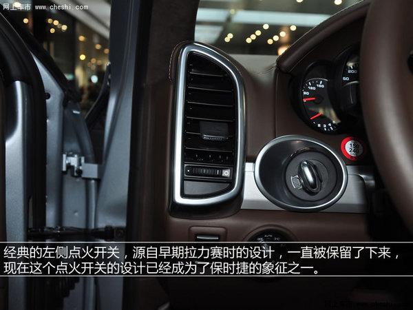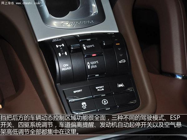 经典的左侧点火开关,源自早期拉力赛时的设计,一直被保留了下来,现在这个点火开关的设计已经成为了保时捷的象征之一。挡把后方的车辆动态控制区域功能很全面,三种不同的驾驶模式、ESP开关、四驱系统调节,车道偏离提醒、发动机自动起停开关以及空气悬架高低调节全部都集中在这里。卡宴全系都需要选装真皮内饰,在这里编辑强烈建议您一定要给内饰包裹上真皮,否则整车的档次根本无法达到百万级豪车的水准。