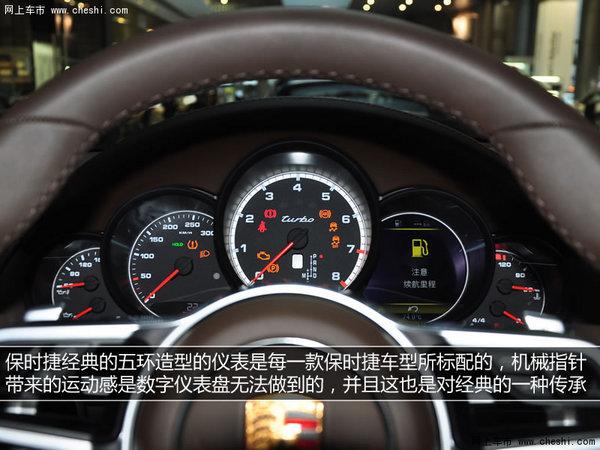 整车内饰依旧是老款车型的风格,大面积的机械按键,很原始很直接,能有一种让人置身于飞机驾驶舱的感觉。保时捷经典的五环造型的仪表是每一款保时捷车型所标配的,机械指针带来的运动感是数字仪表盘无法做到的,并且这也是对经典的一种传承。方向盘的是内饰最大的变化,设计风格与保时捷918相近,粗壮的握感以及优质的真皮材料,传承了保时捷一贯的运动风格。