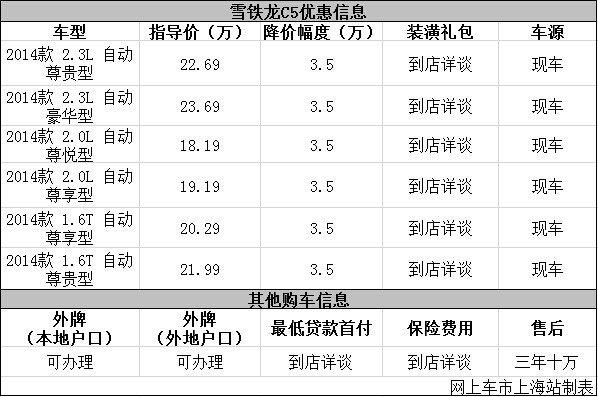 日前网上车市上海站从上海智杰雪铁龙4s店了解到,目前该店雪铁龙C5优惠出售,详细请见下表: