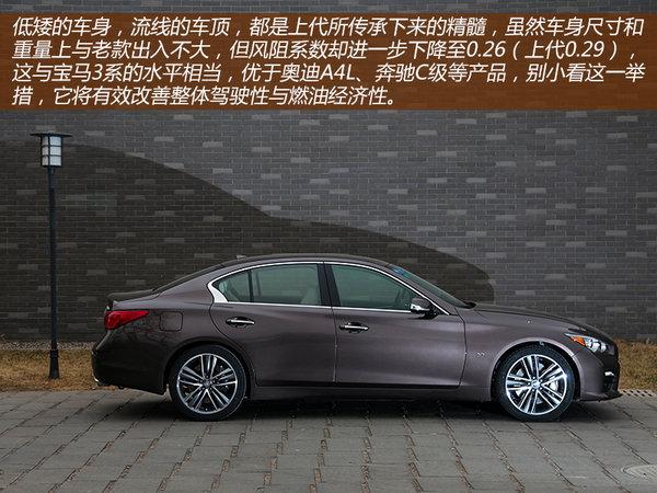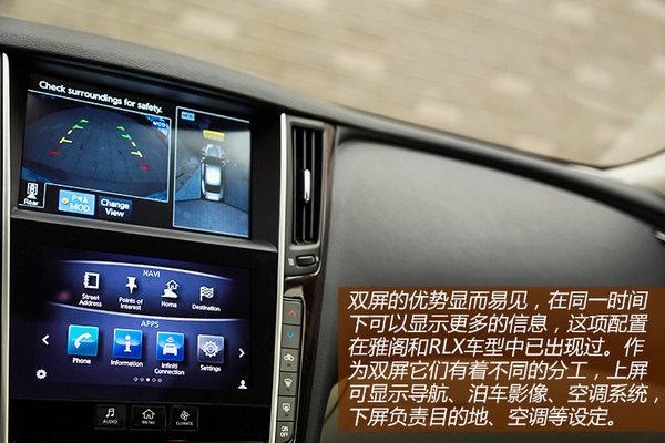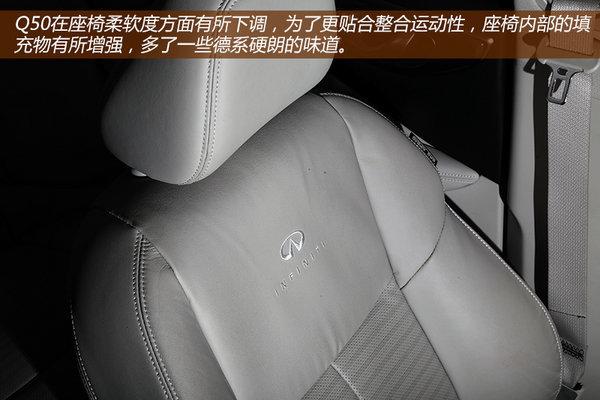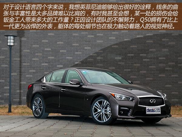 引擎数据完全照搬现款G37的,虽然目前厂家还未公布这款车的详细参数,但在车身铭牌上可以看到最大功率为258kW,折合马力为351ps,按照G37当时的0-100km/h成绩在6秒内来看,Q50S也不会有太大出入。