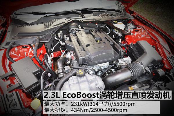 首次出现在Mustang上的全新2.3升EcoBoost涡轮增压直喷发动机,是福特专门针对全新Mustang而打造。发动机集成了涡轮增压、燃油直喷及双独立可变气门正时等先进技术,在拥有堪比大排量发动机动力性能的同时,兼顾小排量发动机的燃油经济性。231千瓦最大功率和434牛 米的最大扭矩,是目前福特发动机家族中升功率最大的,而双涡流涡轮增压技术也是福特首次应用在这款2.3T发动机上。与之匹配的是Select-Shift六速手自一体变速器,同时搭配了带有“降挡转速匹配”功能的方向盘换挡拨片。