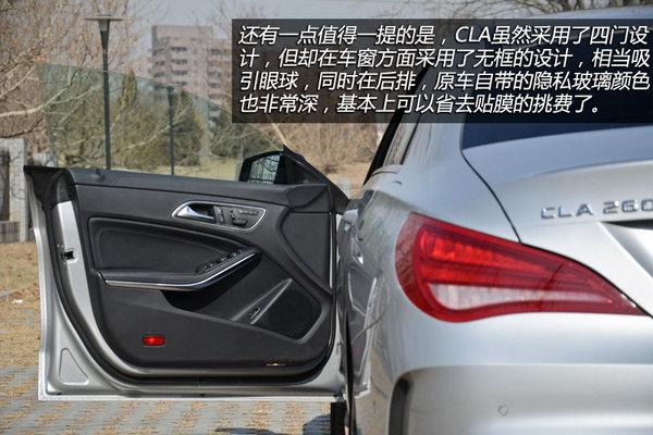 还有一点值得一提的是,CLA虽然采用了四门设计,但却在车窗方面采用了无框的设计,相当吸引眼球,同时在后排,原车自带的隐私玻璃颜色也非常深,基本上可以省去贴膜的挑费了。