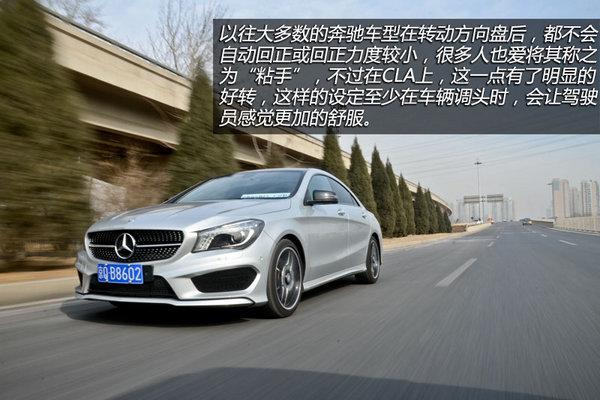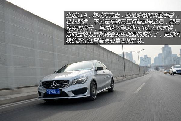 坐进CLA,转动方向盘,还是熟悉的奔驰手感,轻盈舒适,不过在车辆真正行使起来之后,随着速度的攀升,当时速达到30km/h左右的时候,方向盘的力度就将会发生明显的变化了,更加沉稳的感觉让驾驶员心里更加踏实,虽然在转向时它的回馈感依然不够直接,但在四驱系统的帮助下,指向还是非常精准的。