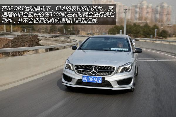 从账面参数来看,CLA显然有着小钢炮的潜质,但实际并非如此,在普通模式下,7速双离合变速箱会勤勤恳恳的工作,换挡相当积极,而发动机的状态却与它形成了鲜明的反差,总是一副不太想跑的样子,非要到你深深的去压榨油门的那一刻,它才会将动力彻底爆发出来。在SPORT运动模式下,CLA的表现依旧如此,变速箱依旧会勤快的在3000转左右时就会进行换挡动作,并不会轻易的将转速指针逼到红线。