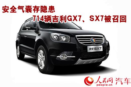 安全气囊存隐患 714辆吉利GX7、SX7被召回