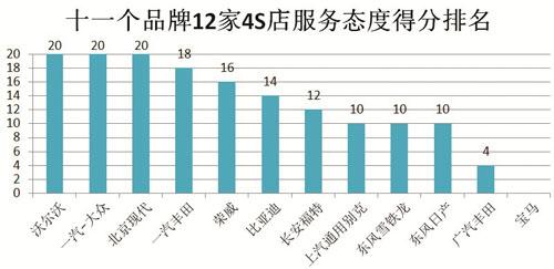在本次调查的12家4S店中,7家4S店的专业素质得到了肯定,获得满分。
