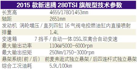 记者试驾的是搭载150马力高功率1.4TSI发动机的280TSI车型,它将会取代现款速腾1.8TSI车型,与之相匹配还是7速干式双离合变速箱。