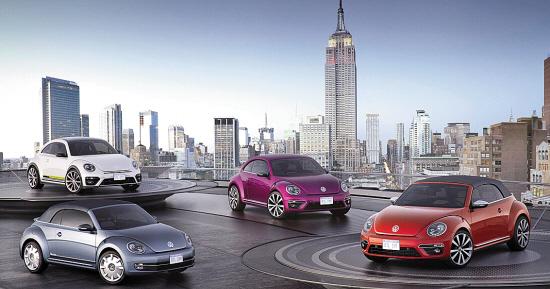 在本届纽约车展,大众推出了四款基于甲壳虫打造的概念车,分别命名为Convertible Denim、Pink Color Edition、Convertible Wave和R-Line。据大众透露,这四款概念车在纽约国际车展亮相后将收集市场反馈,并根据市场的反馈考虑是否投入量产。甲壳虫Convertible Denim的软顶敞篷面料采用了类似牛仔布的材质,车身配以独特的Stonewashed Blue金属车漆,车门处以铝制拉花为装饰并绘有Denim字样。第二款概念车是同样基于敞篷版车型打造而来的Wave概念车,采用了黑色配色的软顶敞篷。外观方面,Wave概念车采用独特的Habanero Orange橙色金属车漆,与上一代车型的橙色纪念版颇为相似。甲壳虫Pink Color Edition车身采用粉红色金属车漆,并配有18英寸的双五幅轮圈。R-Line概念车以高性能为取向,车身采用Oryx White Pearl珍珠白金属车漆。外饰套件则以R风格的造型进行改进,前保险杠两侧增加了额外的进气口,车辆尾部还增加了一个额外的扰流板以及双边四出的排气管。轮毂也采用了20英寸的运动轮毂。