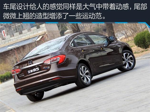由于全新纳5的轴距较长且前悬较短,所以整体车身在后侧看去显得姿态优雅。尾部设计同样给人感觉大气并带有动感。形状狭长的尾灯组同样采用了“L”形的灯组设计,中间由一条粗壮的镀铬饰条相连。