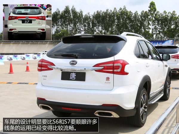 外观上,很多人愿意用更新一些的S7进行比较,但实际上唐却更加接近于S6的身材。当然,无论是之于S6还是S7,唐的总体造型都是继承和发扬,继承的是那个圆滚滚的身材,发扬的确实更加前卫,更加精致的设计。可以从唐的每一处设计上看到比亚迪在外观设计方面的成长和进步,这是我们所有人都愿意看到的好事。