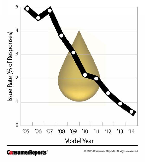 该杂志的数据没有明确表明烧机油与其它引擎问题之间存在直接联系,但通过对10年车龄的车型调查显示,如果一辆车在其早年就开始烧机油,那么随着车龄增大,烧机油的情况会更加严重。在该杂志根据生产年份进行的调查中,每过一年,那些引擎的机油消耗量都会随之增加。