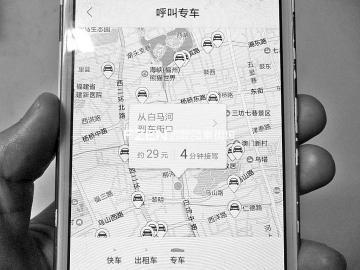 昨日22时,记者在报社输入目的地东街口,“专车”软件显示“4分钟接驾”,很方便。