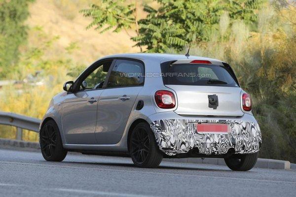 海外媒体曝光了2016款BrabusSmartForFour轻度伪装谍照。据悉,新车正在西班牙进行路试测试。这款曝光的小可爱看起来比现款要低矮一些,也许重新调校了悬挂与制动系统,车尾采用双重排气系统,更加富有运动气息。
