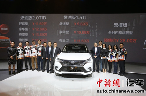 中新网10月13日电 12日,比亚迪宋在北京正式上市,定位为科技领潮新生代SUV,宋再次展现了比亚迪引领潮流的科技创新魅力,主打双色车身,搭载了CarPad多媒体系统、全景天窗、软内饰、全时电四驱、移动电站等系列高端配置,为时尚潮人量身定制。此次推出的宋包含燃油版和双模版共9款车型,其中燃油版售价9.69万元—14.69万元。1.5TI舒适型9.69万元,1.5TI豪华型10.69万元,1.5TI尊贵型11.69万元,2.0TID舒适型11.69万元,2.0TID豪华型12.69万元,2.0TID尊贵型13.69万元,2.0TID旗舰型14.69万元,2.0TID领潮型12.99万元;双模版全时四驱旗舰型预售价28万元。