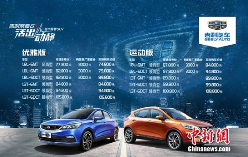 中新网5月6日电 5月4日,吉利汽车以“VR发布会”的形式宣布其跨界车型帝豪GS正式上市。新车共推出运动版和优雅版两个版型、1.3T和1.8L两种排量共计11款车型,官方指导价为7.78~10.88万元,其中1.8L车型将享受厂家购置税补贴3000元,该补贴同步国家购置税减半政策期限,补贴后售价区间为7.48-10.88万元。