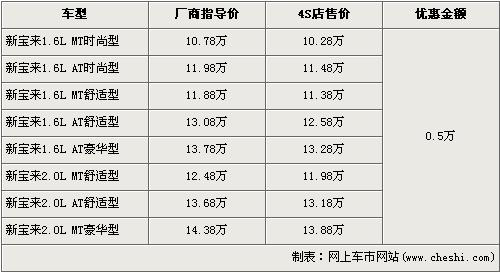 新宝来是一汽大众于去年10月上市的新车型,新宝来共分为1.6L及2.0L两个排量,全系车型多达7个,价格区间为10.78万元-14.38万元。近期根据网上车市价格监测系统显示,新宝来全系优惠5000元,具体车型价格详情请看下表: