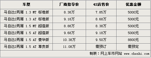 时尚的外观,灵动的造型,马自达2推出以来受到无数型男型女的追捧,同时日系车一贯科技含量较高,使马自达2成为时尚人士的数码玩具。目前根据网上车市价格监测系统显示,马自达2的价格近期出现了一定幅度的松动,具体车型以及价格如下: