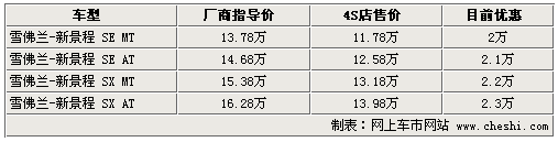 据4S店销售人眼介绍:目前新景程现车非常充足,颜色也较为齐全,不过缺少红色、金色。目前优惠幅度在2万元-2.3万元之间,最低配置车型已经下降至11.78万元。作为一款标准B级轿车,新景程的性价比优势非常明显。