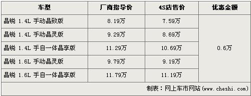 上海大众斯柯达旗下的第二款车型晶锐已于去年12月22日上市,这款时尚、欧洲风格鲜浓的特色小车共有1.4L、1.6L两种排量共5个车型在售,售价区间为8.19万元-11.79万元。近日据网上车市网站价格监测系统显示,斯柯达晶锐全系优惠从6000元,具体车型价格请看下表: