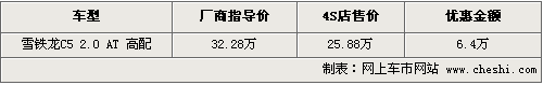 雪铁龙C5是以进口方式引进销售的高端豪华轿车,目前进口车型降价甩货,最高优惠幅度达到了6.4万元,同时国产C5将在年底推出。这款新车将投产于神龙汽车二厂的3号平台,预计售价在20万-25万左右。具体行情如下: