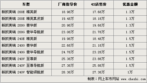 新凯美瑞在老款车型基础上进行了全面的升级,整体性价比更高。随着马自达6睿翼等新车的上市,中级车市场的竞争日渐激烈,凯美瑞在价格方面的优惠也在不断调整。目前笔者了解到,新凯美瑞全系最高可优惠1.5万,部分车型还有一定的让利空间。