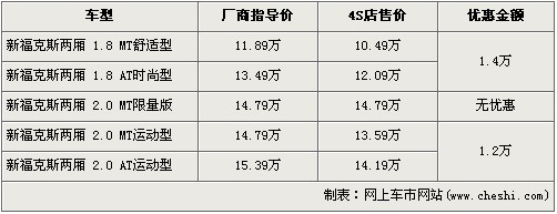据福特4S店销售人员介绍:目前福克斯两厢推出了SVP限量版车型,售价为14.78万元,限量版现车已经到店,但是数量非常有限订金为1000元。目前在售的两厢福克斯普通版车型最高优惠1.4万元,并且现车比较充足。