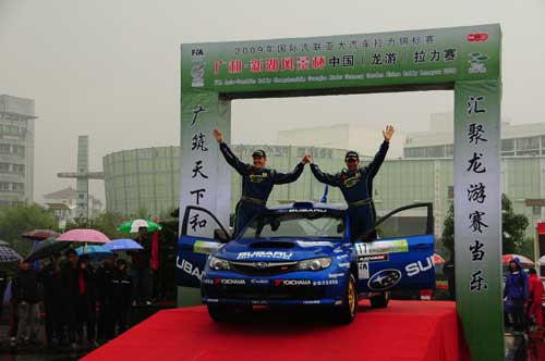 中新网11月16日电 11月15日,经过三天的激烈角逐,2009年全国汽车拉力锦标赛(CRC)龙游拉力赛在霏霏细雨中落幕。上届龙游站冠军得主——斯巴鲁中国拉力车队澳大利亚籍外援车手迪恩•赫里基(Dean Herridge)再次夺冠。