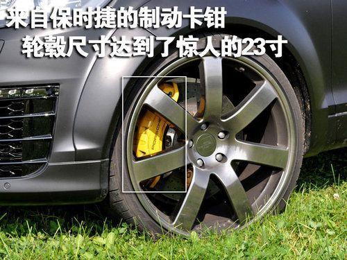 改装后的奥迪Q7轮毂尺寸达到了23寸,轮胎规格为315/25 R23。如此惊人的尺寸让我们很难再把眼前的Q7和“越野”二字联系在一起,它俨然变成了一款公路上的速度机器。