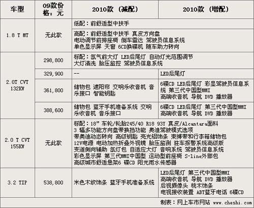 2010款车型配置提升 最高涨价近4万元