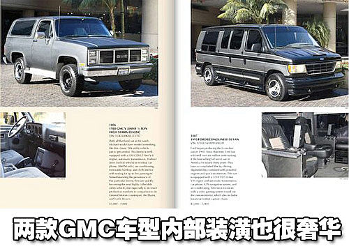 迈克尔·杰克逊所拥有的其它车型还有1993福特房车Econoline van,该车配置了真皮包装的座椅,此外电视显示屏以及电脑游戏控制台等。他还拥有1986 GMC High Sierra firetruck 和 1988 GMC Jimmy。而这其中的亮点车型为其电动驱动的一款机车和一款Harley Davidson的警察用车。
