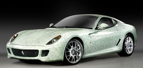 一辆由中国当代著名艺术家卢昊悉心设计的中国限量版法拉利599 GTB Fiorano艺术典藏跑车引起轰动,这辆独一无二的法拉利全身散布着宋代哥窑开片瓷器式的纹理,正是卢昊用现代创意的手法将中国古典元素通过手工漆绘形式在车身上得以完美展现。车身以温润的冰玉色为漆底,上面精心绘制了深浅错落、含蓄幽雅的哥窑开片瓷纹图案。除了“中国”字样的车身铭牌外,方向盘点火按钮上“启动”和转速表上“零-十”的字样,均采用中国书法篆体,细节之处的中国元素,同样被不露声色地彰显得淋漓尽致。一千多年前,正是哥窑通过丝绸之路让中国瓷器扬名于欧洲,如今带着古代文明神韵的欧洲名车来到经典的发源地,让人有种时光交错之感。