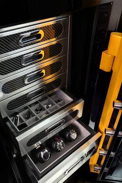 兰博基尼特别版保险箱内部拥有很多分层,可以方便、安全的存放不同的物品。如果您是兰博基尼的车主,在配一款如此特别的保险箱,必然会非常惹人羡慕。不过,及时你将贵重的钟表、首饰及珠宝等物品放入其中,您也仍然可以放心的驾驶自己的爱车去远郊兜风。