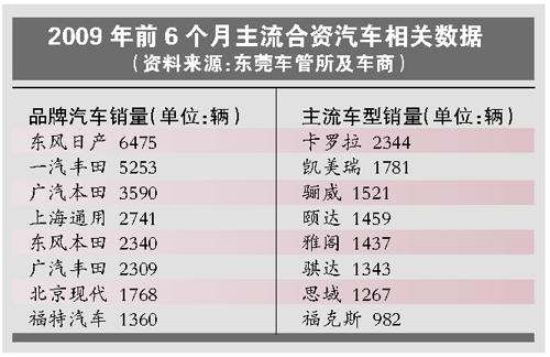 作为东莞车市的中流砥柱,合资汽车在经济大环境回暖的情况下,上半年销量不断上升。东风日产销量稳居第一,一汽丰田、广汽本田分居其后。在销量上出现新的变化是北京现代、上海通用这两大品牌,在销量上增长快于其他非日系车。